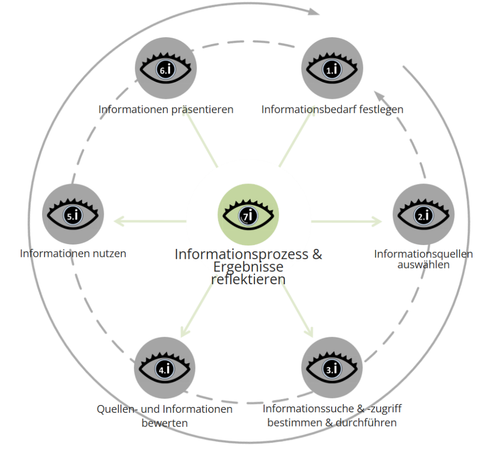 Das 7i Prozessmodell ist ein wissenschaftlich fundiertes Framework und wurde entwickelt, um den kompetenten Umgang mit digitalen Informationen besonders im schulischen und akademischen Bereich systematisch abzubilden.