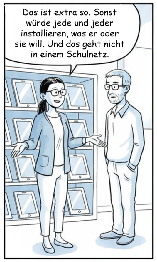 Das hat Vorteile: Das System bleibt sicher, Updates werden automatisch gemacht, und niemand kann versehentlich wichtige Einstellungen ändern. Aber es bedeutet auch: Für bestimmte Dinge brauchst du Unterstützung von Admins.