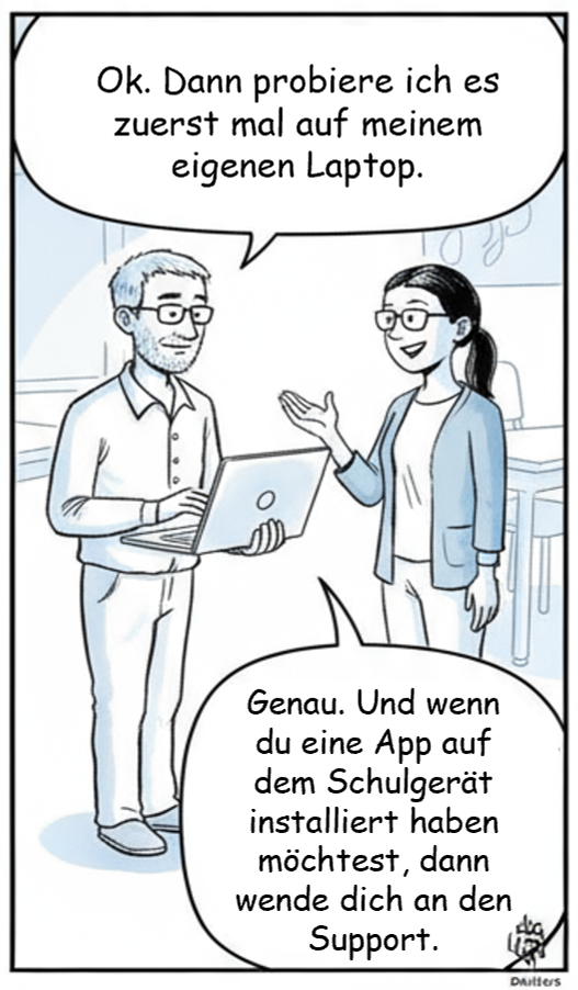 Wenn du ein Arbeitsgerät deines Arbeitgebers benutzt, hast du in der Regel ein Benutzerkonto mit eingeschränkten Rechten – du kannst damit arbeiten, aber keine Programme installieren oder Systemeinstellungen ändern. Viele dieser Geräte sind mit einem Netzwerk verbunden, das zentral verwaltet wird – oft durch die IT-Abteilung oder eine externe Firma.