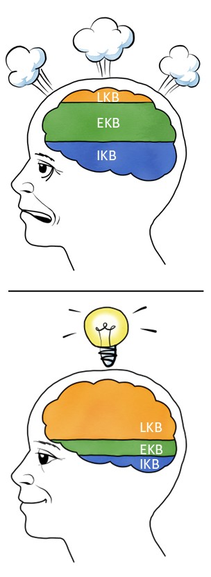- Das was vom Gefäss der kognitiven Kapazität übrig bleibt, wird mit der lernbezogenen kognitiven Belastung (LKB) aufgefüllt. Diese wird für das Verarbeiten von neuen Informationen genutzt.