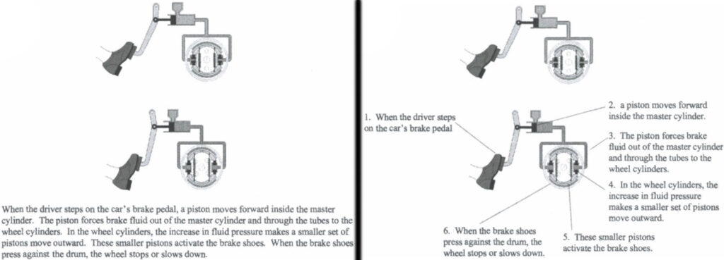 Diese Darstellung ist aus einem Experiment zum Prinzip der räumlichen Kontiguität entnommen. Eine Gruppe lernte mit der integrierten Darstellung rechts und die Kontrollgruppe mit der Darstellung links, wie sie häufig in Schulbüchern zu finden ist. Die Variante rechts hat zu signifikant besseren Lernresultaten in einem anschliessenden Transfer Test geführt (vgl. Fiorella & Mayer 2022).