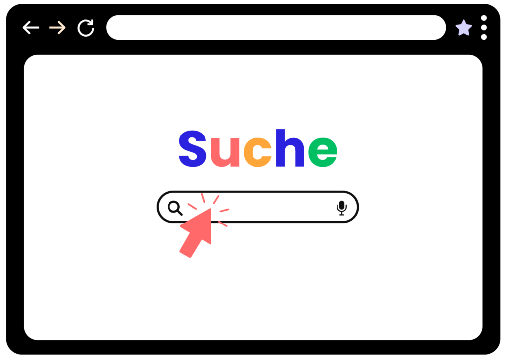 Die Suchleiste in der Mitte (zum Beispiel bei Google) ist wie ein digitales Schaufensterbummeln. Du schlenderst durch eine Einkaufsstrasse und schaust, was dich interessiert. Vielleicht hast du eine grobe Idee, aber noch kein genaues Ziel. Dann kannst du hier Fragen oder Begriffe eingeben wie zum Beispiel die Suchbegriffe «Lernspiele 5. Klasse». Du erhältst passende Vorschläge von Seiten, Links, Videos und Bildern, die dich inspirieren können.